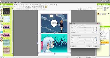Make as many adjustments as needed until you are satisfied. (Then it becomes a waiting game between you and your client.) You can easily create high quality comics simply by laying out data! (However, please provide your own imagination and motivation.)You can save a lot of time! (You no longer need to stay up all night working only to carelessly knock over an inkbottle).